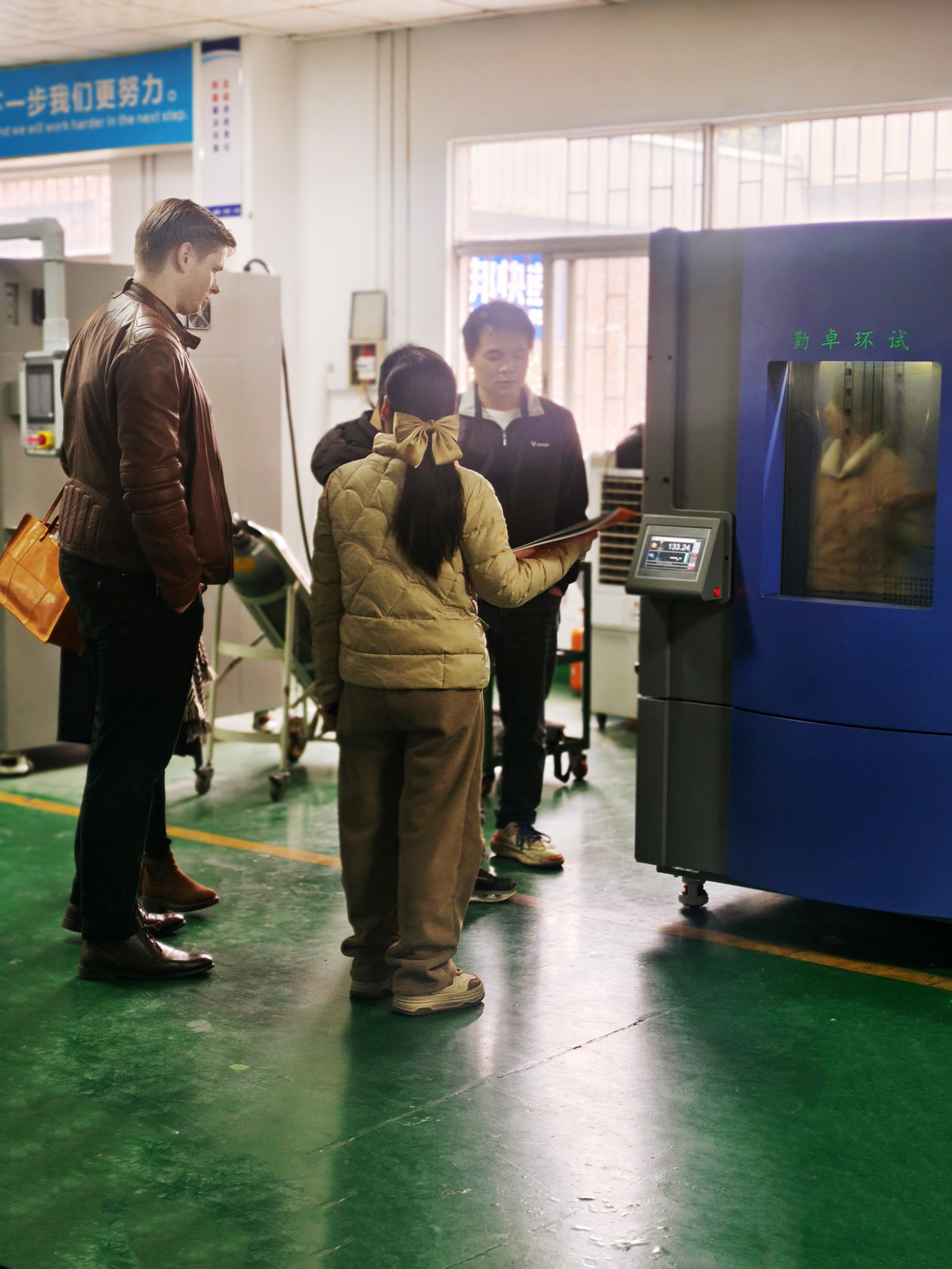 外企客戶攜帶產品至勤卓環境測試車間進行高低溫濕熱試驗