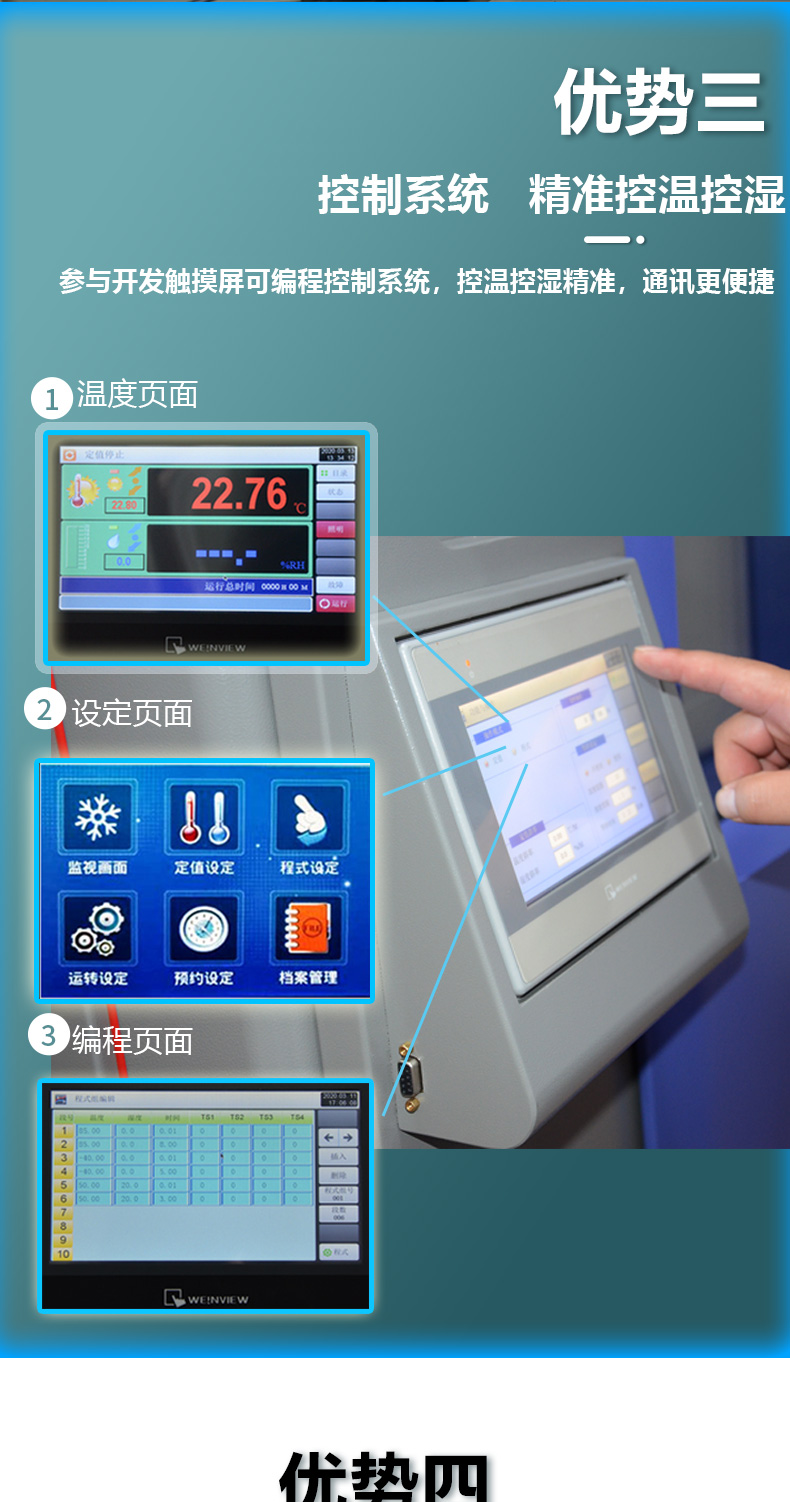 液晶顯示屏專用恒溫恒濕試驗箱必須有多階段的測試程序,因為液晶顯示屏產品在使用過程中會遇到各種復雜多變的自然環境,如高低溫突變、高高濕度交替、高濕度同時發生變化等,還有其他環境,這就要求恒溫恒濕試驗箱具有精確的環境模擬功能,以滿足試驗要求。